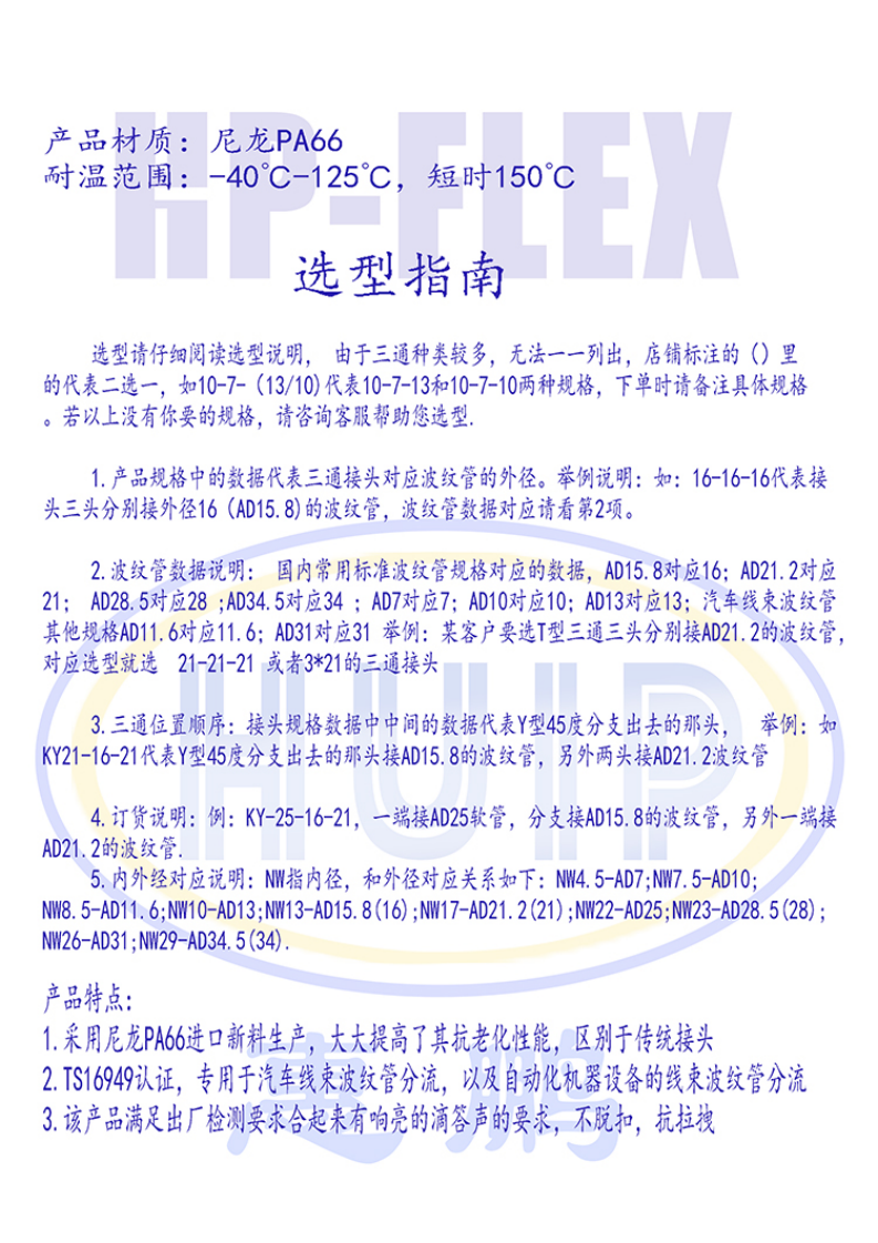 - 塑料波纹管三通接头 RQT- U(Y)型三通等径变径橡胶原料接头 厂家直销 塑料波纹管直通接头 尼龙软管直通头工业新品 波纹管三通接头固定件 波纹软管固定座 固定插销 塑料波纹管可开式T型三通接头环保型 抗老化 现货库存 塑料波纹管可开式Y型三通接头 线路分支固定接头 TS16949认证 环保型 耐温-40℃到120℃ SMG型 M公制系列塑料软管快速接头 波纹管接头尼龙接头PA66 耐磨 无毛刺 抗拉拽 SMG型 M公制系列塑料软管快速接头 波纹管接头尼龙接头PA66 塑料波纹管三通接头 T型KTC款可开式 线束分流器 汽车线束波纹管分流扎扣